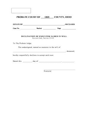 Editable how to decline being executor of a will - Fill ... from www.pdffiller.com Acting as an executor involves a myriad of duties, including preparing a thorough inventory of assets, paying final debts and taxes, and transferring shares of the estate to the recipients listed in the will. If you select a professional, such as a bank or attorney, there. One way an executor can end all obligations toward it is by fulfilling its responsibilities. How do you stop being an executor of a will? We are five kids in the family and my sisters and i think my brother, who's the executor of my parents' will, will find a way to take everything. An executor is the individual or organization that will oversee the distribution of your assets as outlined in your will. Trina is one of five siblings and her brother has been named executor of their parents will? This overview will lay out the timeline of the process.